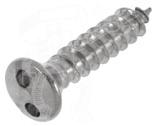 Blechschrauben mit Linsen-Senkkopf und Zweilochantrieb sind Gewindeschrauben mit metrischem Regelgewinde (M), welche durch den besonderen Sicherheits-Antrieb eine Sicherungseigenschaft gegen unbeabsichtigtes Ausdrehen oder Manipulieren haben. Der Linsen-Senkkopf hat einen schöne Linse und versenkt seinen unteren Teil im Material. Vorsenken ist erforderlich! Zu unterscheiden sind Sicherheitsschrauben, die mit Spezialwerkzeug verarbeitet und wieder gelöst werden können und solche, die nur noch durch Zerstörung lösbar sind. Wir empfehlen dringend, Sicherheitsschrauben nur mit dem passenden Spezialwerkzeug zu verarbeiten, da sonst der Antrieb oder Kopf beschädigt wird und ein Weiterverarbeiten oder Lösen der Schrauben unmöglich wird!