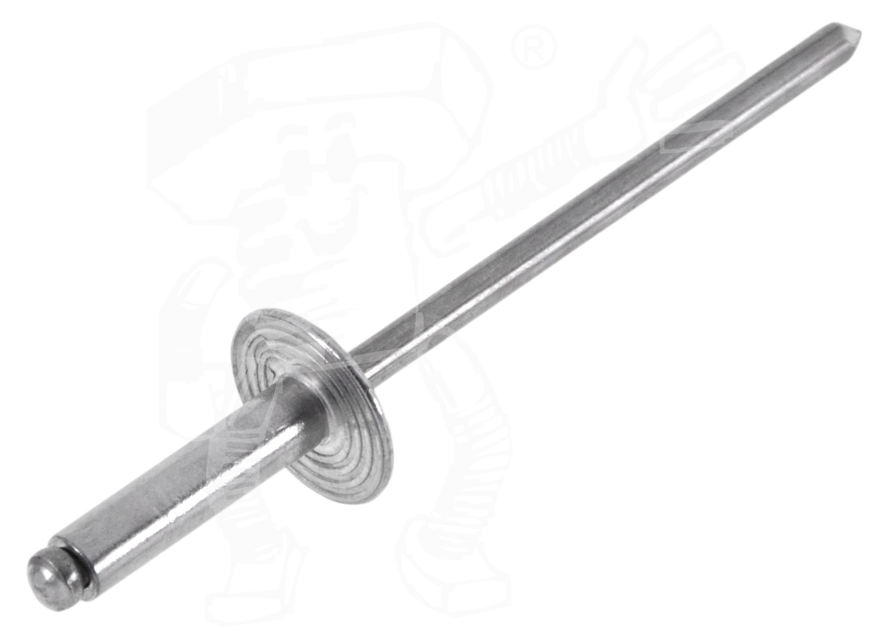 € Offene Blindnieten mit großem Flachkopf CK 9,5 mm sind eine spezielle Form des Hohlniets, die über eine spezielle Blindnietzange verarbeitet werden und zur Verarbeitung nur Zugang zu einer Seite des Bauteils benötigen, das verbunden werden soll. Sie werden auch als Popniet(en) oder Zugdornniet(en) bezeichnet. Der "Kopf" der Blindniete kann als Senkkopf oder Flachkopf ausgeführt sein. Sie haben einen besonders großen, flachen Kopf.