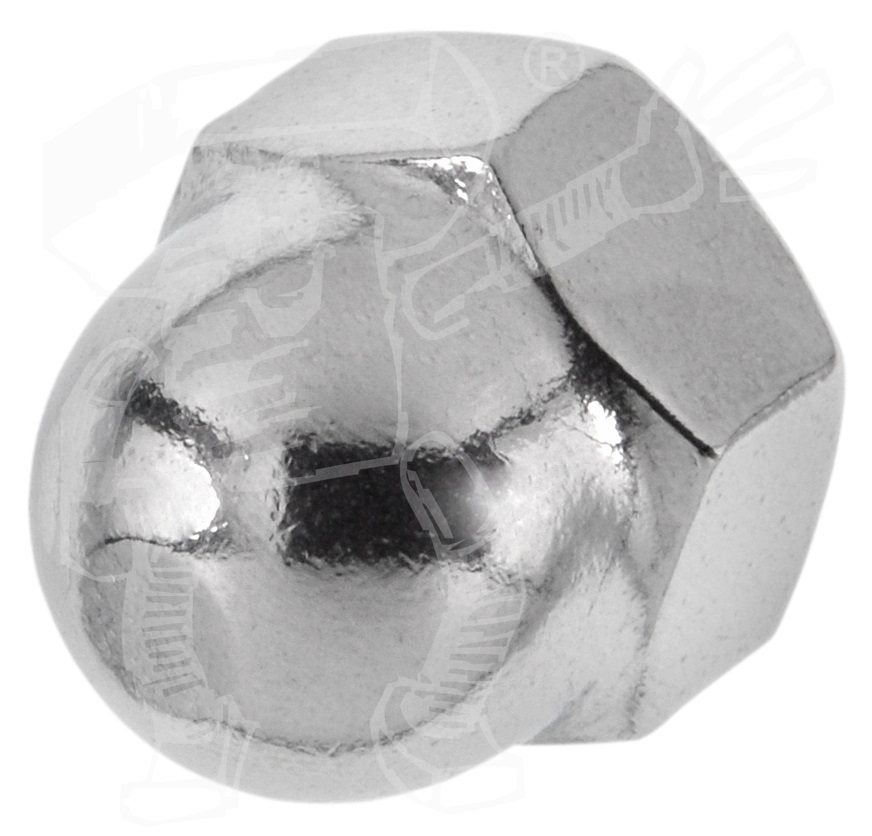 Hutmuttern gibt es in der schönen hohen Form (DIN 1587), bei geringerem Platzbedarf als niedrige Hutmutter (DIN 917) oder auch mit Sicherungselement (DIN 986 Sicherungsmutter mit Polyamidklemmteil).