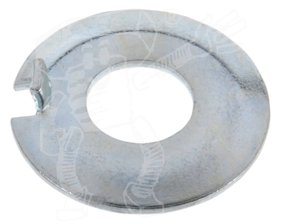 € DIN 432 Scheiben mit Außennase sind meist gestanzte runde Scheiben mit rundem Innenloch. Im Rand ist ein Stück, die Außennase, ausgestanzt und um 90 Grad aufgebogen. Diese Scheibe kann über die Außennase arretiert werden.