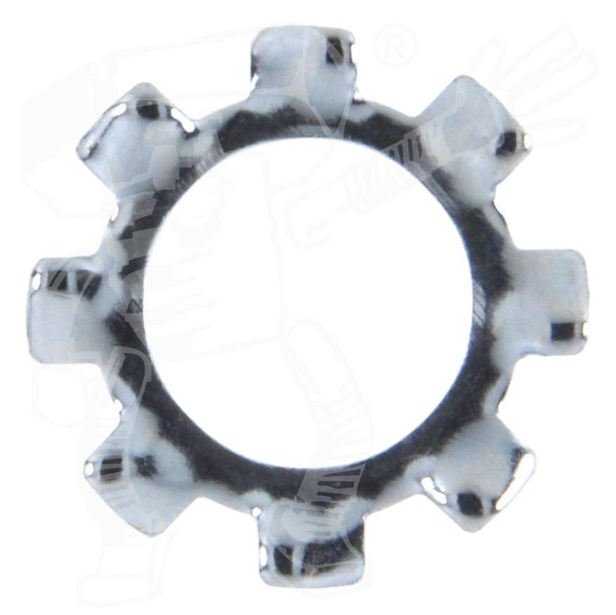 DIN 6797 Zahnscheiben Form A= außenverzahnt sind Elemente zur Schraubensicherung. Sie sind meist flach aus Blech ausgestanzt und haben nach außen oder innen stehende Zähne. Ihre Aufgabe ist es, das Lockern von Schraubenverbindungen zu unterbinden. Eingesetzt werden Zahnscheiben häufig im Maschinenbau, der Elektrotechnik bei Gehäusen, der Metallindustrie oder im Automobilbau. Die Zähne sind nach außen hin ausgerichtet. Wenn die Zahnscheibe am Untergrund kratzt, sind die Kratzstellen leider sichtbar - anders als bei den Zahnscheiben mit Innenzähnen.