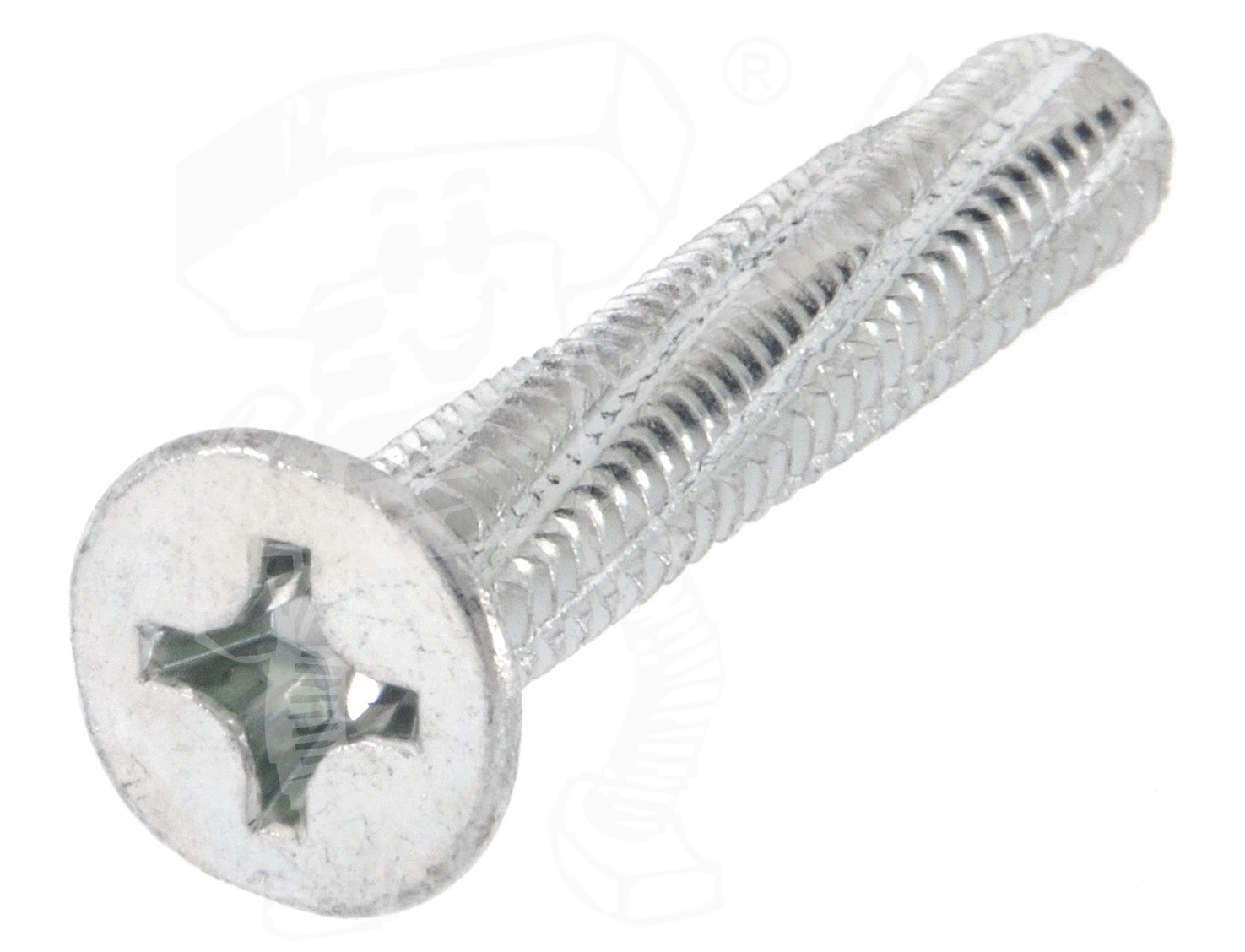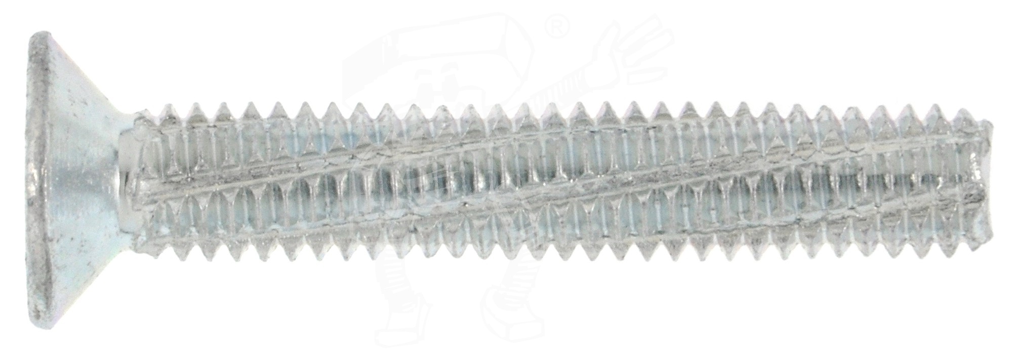 Schneidschrauben DIN 7516 Form D haben einen Senkkopf, welcher nach dem Vorsenken komplett im Material verschwindet und eben damit abschließt. Achtung! Vorsenken ist nötig, weil diese Schneidschrauben Form D keine Fräsrippen haben. Als Antrieb besitzen sie einen Phillips-Kreuzschlitz PH.
