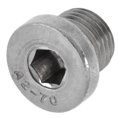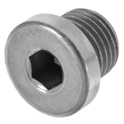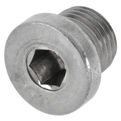 DIN 908 Verschlußschrauben mit Bund und Innensechskant, zylindrisches FEIN-Gewinde sind eine Sonderform der Schrauben, die auf der einen Seite einen Kopf mit Antrieb und auf der anderen Seite ein Gewinde haben. Eingesetzt werden sie z. B. als Ölablassschrauben bei Motoren, zur Schmierung oder Dichtung von Löchern an Bauteilen. Sie haben ein zylindrisches FEIN-Gewinde. Der Bund vergrößert die Auflagefläche und sorgt für eine bessere Abdeckung des Bohrlochs oder einer höheren Kraftübertragung. mehr ...