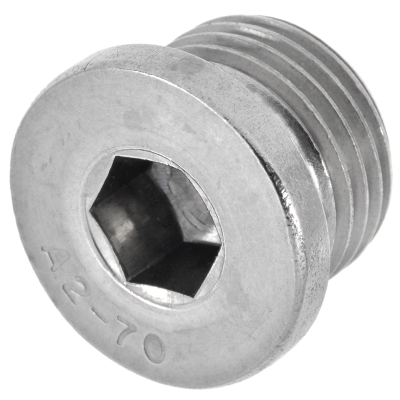 DIN 908 Verschlußschrauben mit Bund und Innensechskant, zylindrisches Rohrgewinde G sind eine Sonderform der Schrauben, die auf der einen Seite einen Kopf mit Antrieb und auf der anderen Seite ein Gewinde haben. Eingesetzt werden sie z. B. als Ölablassschrauben bei Motoren, zur Schmierung oder Dichtung von Löchern an Bauteilen. Sie haben ein kegeliges Rohrgewinde (G), welches nach DIN 228 als Gasgewinde hergestellt ist. Rohrgewinde eignet sich für die Verschraubung von Rohren (z. B. Öl, Gas, Wasser, Pressluft) und wird meist im Bereich Sanitär-, Heizungs-, oder Klimatechnik eingesetzt. Der Bund vergrößert die Auflagefläche und sorgt für eine bessere Abdeckung des Bohrlochs oder einer höheren Kraftübertragung. mehr ...