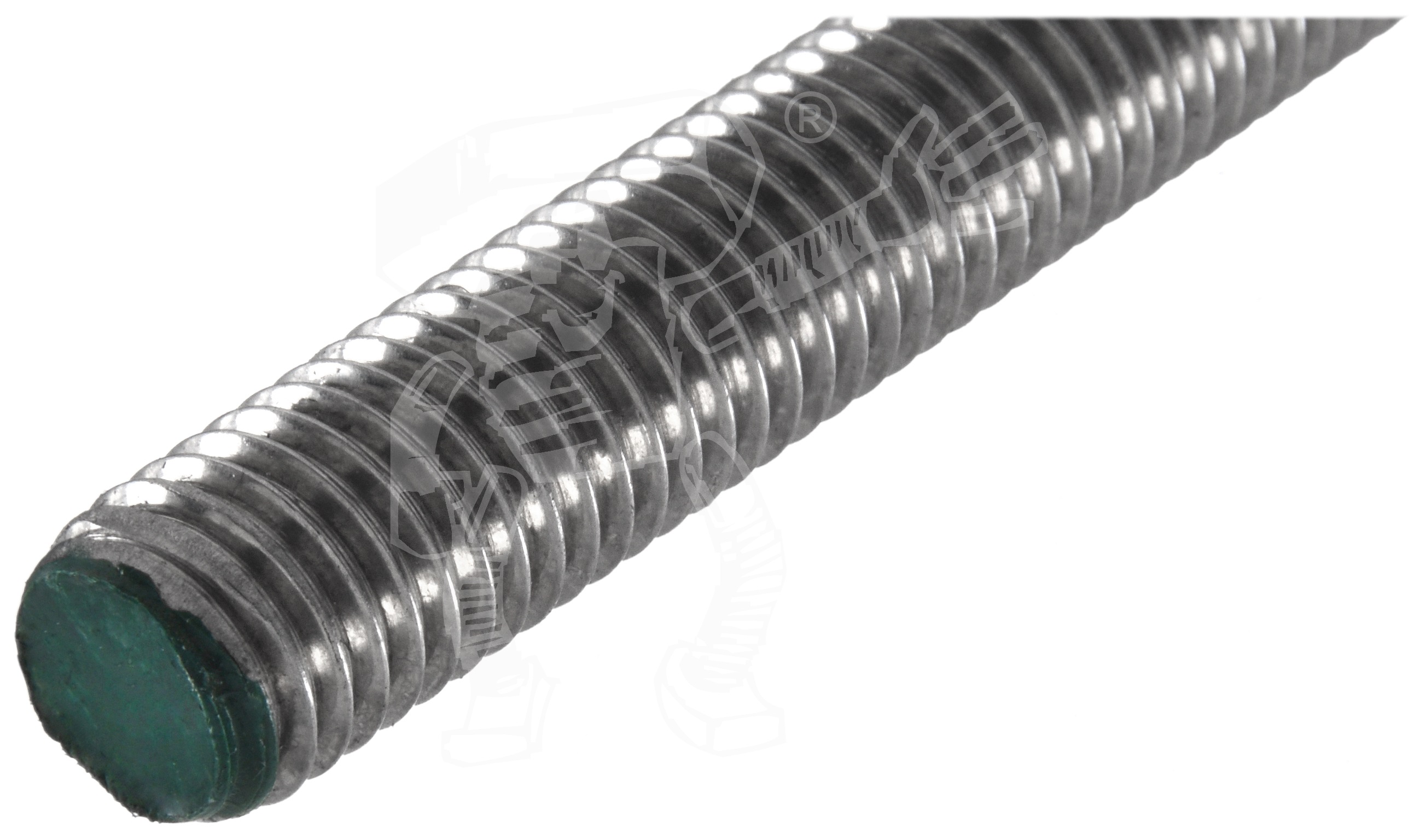 € DIN 976 Gewindestangen, Länge 1000 mm sind meterlange Stäbe mit Außengewinde, die auf beiden Seiten weder einen Kopf noch Antrieb besitzen. Der Werkstoff einer Gewindestange ist meist beidseitig an einer farblichen Kennzeichnung erkennbar. Sie haben ein rechtsdrehendes metrisches Regelgewinde (M).