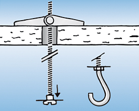 Mit den fischer Kipp- und Federklappdübeln KD/KDH können verschiedenste Anbauteile wie z.B. Bilder, Leuchten und Regale in Gipskarton- und Gipsfaserplatten, Spanplatten und Hohldecken aus Ziegelstein und Beton befestigt werden. Die lange Gewindestange ermöglicht die Anwendung bei unterschiedlichen Plattenstärken und Anbauteildicken. Wahlweise mit Schraubenkopf (KD 3+4), Mutter mit Unterlagscheibe (KD 5+6+8) oder Rundhaken (KDH 3+4+5+6+8) erhältlich. Dadurch können die fischer KD/KDH besonders vielfältig eingesetzt werden. Die Dübel werden in der Vorsteckmontage in das Bohrloch eingeführt und klappen hinter der Platte selbstständig auf. Dies erfordert kein spezielles Montagewerkzeug und erlaubt eine komfortable und schnelle Montage.