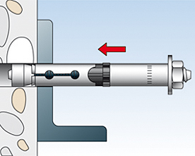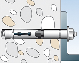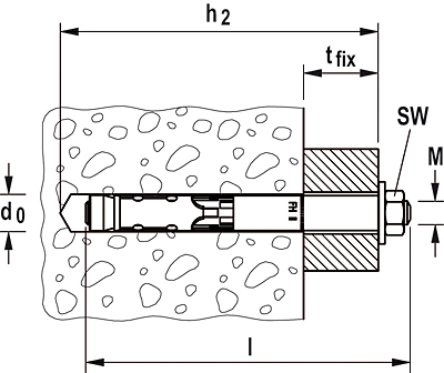 Der fischer Hochleistungsanker FH II-B mit Gewindebolzen ist ein Hülsenanker aus galvanisch verzinktem Stahl. Der FH II B ist bestens geeignet, um in gerissenem und ungerissenem Beton Konsolen, Stahlkonstruktionen und Kabeltrassen zu verankern. Die Europäische Technische Bewertung und die Brandeignung nach Feuerwiderstandsklasse R 120 garantieren ein Plus an Sicherheit. Ergänzt wird dies durch die internationalen Zulassungen, die auch Anwendungen in Erdbebengebieten (Seismik C1 und C2) abdecken. Der Anker wird in der zeitsparenden Durchsteckmontage oberflächenbündig im Anbauteil gesetzt. Beim Anziehen der Mutter wird der Konus in die Spreizhülse gezogen und verspannt diese gegen die Bohrlochwand. Das Anbauteil wird dadurch an den Verankerungsgrund gezogen. Der schwarze Kunststoffring verhindert, dass sich der Anker mit dreht, und nimmt den Anzugsschlupf auf.