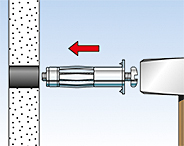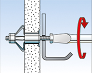 • Mitdrehsicherung für komfortable Montage: Kralle am Dübelrand fixiert Dübel im Plattenbaustoff.