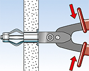 Der fischer Hohlraum-Metalldübel HM-S ist ein vielseitiger Hohlraumdübel mit metrischer Schraube für alle Plattenbaustoffe. Der Dübel wird mit der Montagezange fischer HM-Z 1 in der Vorsteckmontage gesetzt. Mit der Zange wird der Dübel im Hohlraum gegen den Plattenbaustoff gezogen. Die Spreizarme klappen dabei auf und pressen sich an die Plattenrückseite. Alternativ ist auch die Montage mit einem Schraubendreher oder einem Akku-Schrauber möglich. Der fischer Hohlraum-Metalldübel HM-S ist geeignet für die Befestigung von Leuchten, Handtuchhaltern und Gardinenschienen im Innenraum.