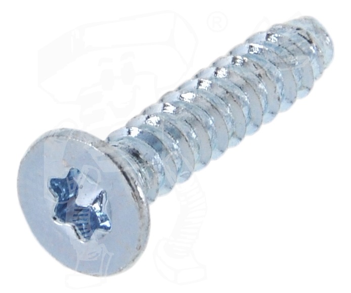 € ISO 14586 Senk-Blechschrauben mit Innensechsrund (TX), C= mit Spitze dienen der Verschraubung eines Blechs mit einem Bauteil. Sie besitzen einen Senkkopf, der eben mit dem Untergrund abschließt. Achtung! Dazu ist das manuelle Vorbohren nötig, da diese Schrauben keine Fräsrippen am Kopf haben. Als Antrieb haben sie einen handelsüblichen Innensechsrund-TX-Antrieb. Die Spitze dient dazu, die Schraube beim Festdrehen im Material zu fixieren und so den Einschraubvorgang zu erleichtern. Das Blech benötigt dabei keine Gewinde an den entsprechenden Stellen, da die Blechschraube sich das Muttergewinde beim Einschrauben selber durch ihr Außengewinde formt. Die Schrauben bestehen aus einsatzgehärtetem Stahl und verfügen über ein scharfkantiges Gewinde mit großer Steigung.