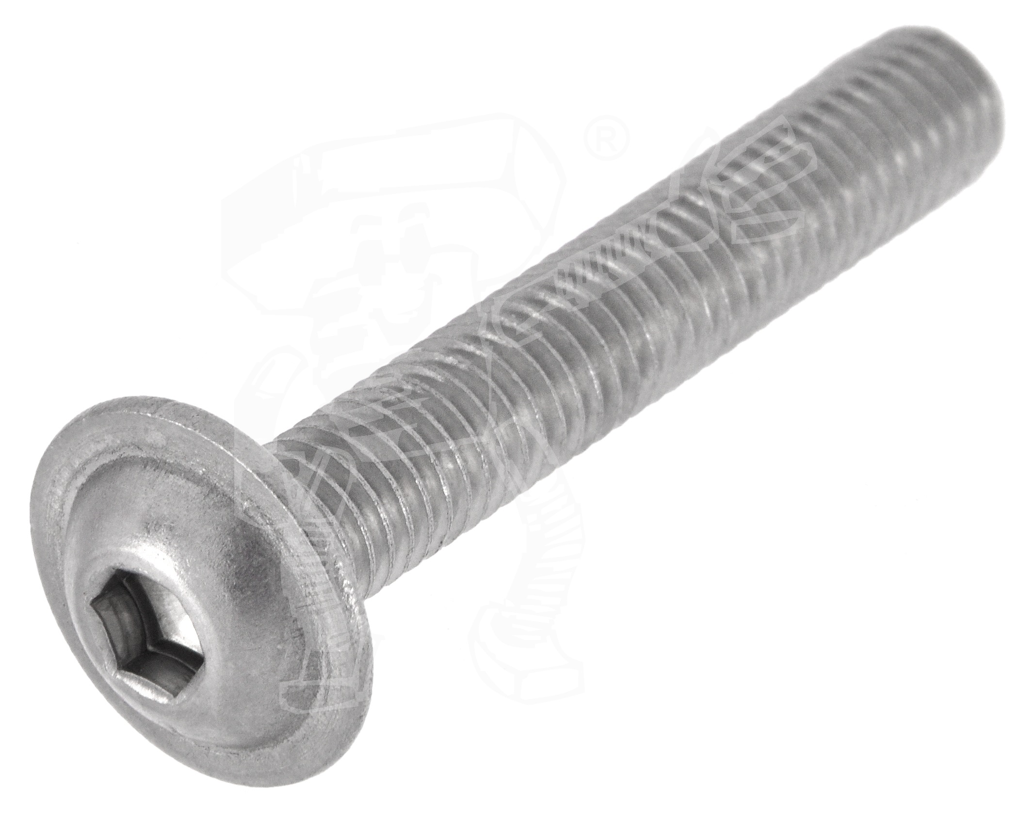 ISO 7380 Flachkopfschrauben mit Innensechskant und Flansch haben ihren Namen zum einem vom metrischen Regelgewinde (M) (= Gewindeschraube), zum Anderen von der flachen und oben abgerundeten Kopfform. Sie sind ein immer stärker verbreitetes TOP-Produkt. Der Anwendungsbereich von Flachrundschrauben mit Innensechskant sind der Maschinen- und Anlagenbau und der Motorsport. Alternativ liefern wir Flachkopfschrauben mit extra großem Kopf: Becherschrauben. Der Innensechskant-Antrieb kann mit handelsüblichen Winkelstiftschlüsseln verarbeitet werden.