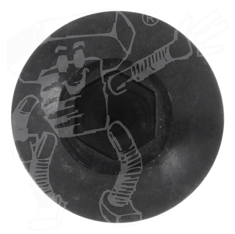 Der Schraubenkopf liegt flach auf dem Material auf und sorgt für eine gute Kraftübertragung. Der Flachkopf ist wenig hoch aber relativ groß im Außendurchmesser. Er ist besonders formschön.