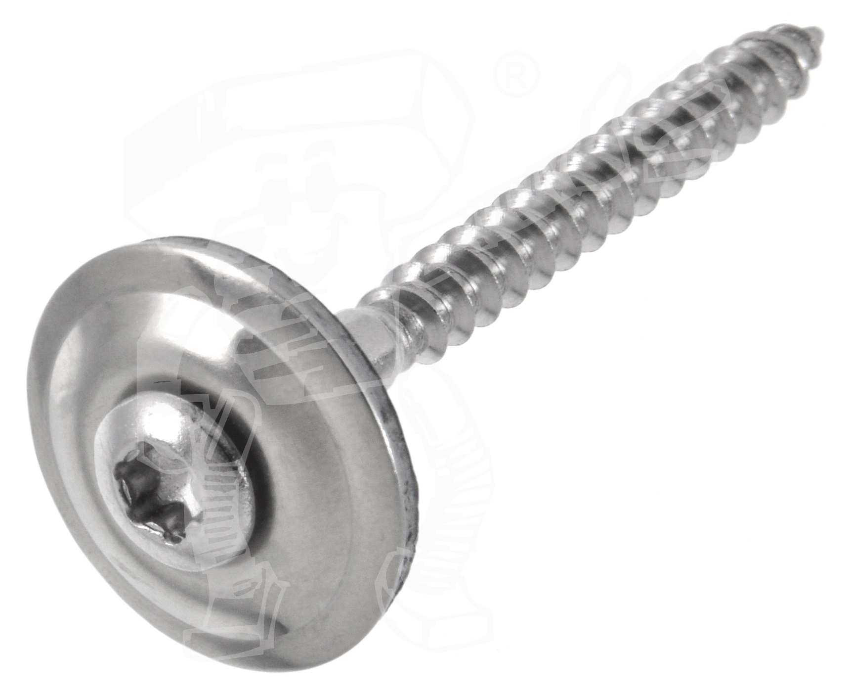 Linsen-Senkkopf-Spenglerschrauben mit EPDM mit Dichtscheibe 20 mm und Innensechsrund (TX) sind Schrauben mit Blechgewinde, die eine besonders auffällige große Dichtscheibe unterhalb des Kopfes und einen relativ kleinen Linsen-Senkkopf haben. Die Dichtscheibe ist aus EPDM (Ethylen-Propylen-Dien-Kautschuk), umgangssprachlich Neopren. Die Scheibe dichtet den Schraubenkopf gegenüber dem Bohrloch gegen Regen, Schnee, Feuchtigkeit und Wind ab. Der Kopf dieser Schraube ein Linsensenkkopf. Der Schraubenkopf verschwindet im Senkteil der Senkrosette, sodass am Ende nur noch die formschöne Linse übrig bleibt. Ein Vorsenken ist nicht erforderlich, da die Rosette eben aufliegt und nicht versenkt wird. Als Antrieb verfügen diese Schrauben über einen handelsüblichen Innensechsrund-TX-Antrieb, der mit normalen TX-Bits verarbeitet werden kann.