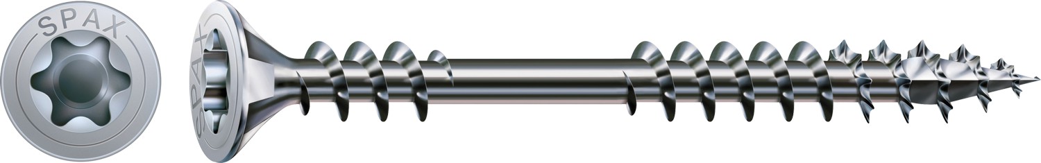 SPAX Verlegeschrauben, Senkkopf, Fixiergewinde mit 4CUT-Spitze, T-Star plus (Innensechsrund = TX) WIROX (Stahl weiß verzinkt)