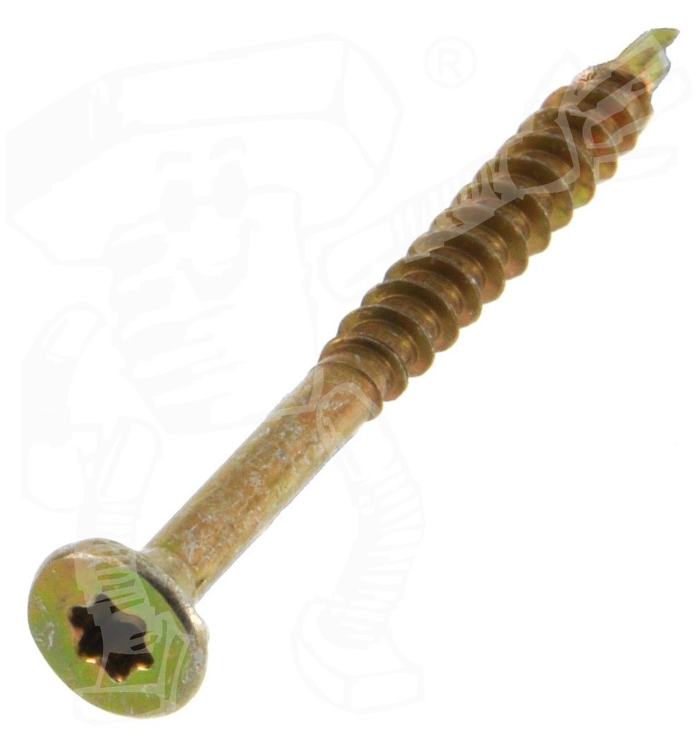 Spanplattenschrauben mit Innensechsrund (TX), Senkkopf, Fräsrippen, Bohrspitze, Teilgewinde, Importware STAHL - verzinkt gelb/weiß