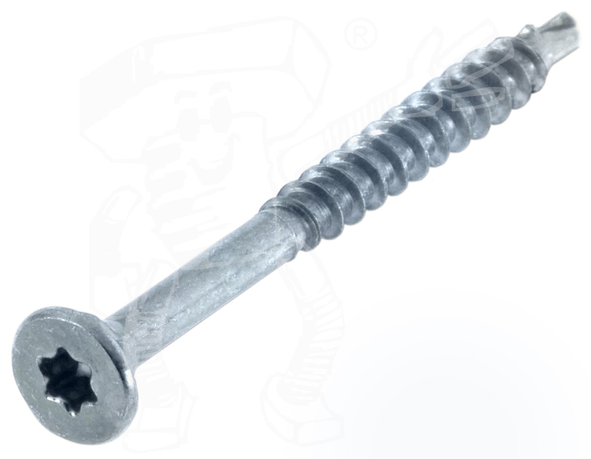 Verwendung von Spanplattenschrauben mit Innensechsrund (TX), Senkkopf, Fräsrippen, Bohrspitze, Teilgewinde