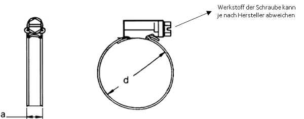 Schlauchschellen ähnlich DIN 3017, Bandbreite 12 mm ermöglichen das Sichern von Schläuchen gegen Verrutschen und das Befestigen von glattwandigen Schläuchen an Rohren, Kupplungen oder sonstigen Anschlüssen. Man erhält sie in den größten Durchmessern und sie haben aufgrund der hohen Breite einen besonders guten Halt. Schlauchschellen bestehen aus einem glatten, runden Metallband, das an einem Kopf über eine Stellschraube im Durchmesser verstellt werden kann. Die Stellschraube hat meist einen Schlitz und oder Kreuzschlitz. Je weiter Sie die Stellschraube anziehen, desto größer wird der Druck auf das Rohr oder den Schlauch - er wird zusammen gepresst.